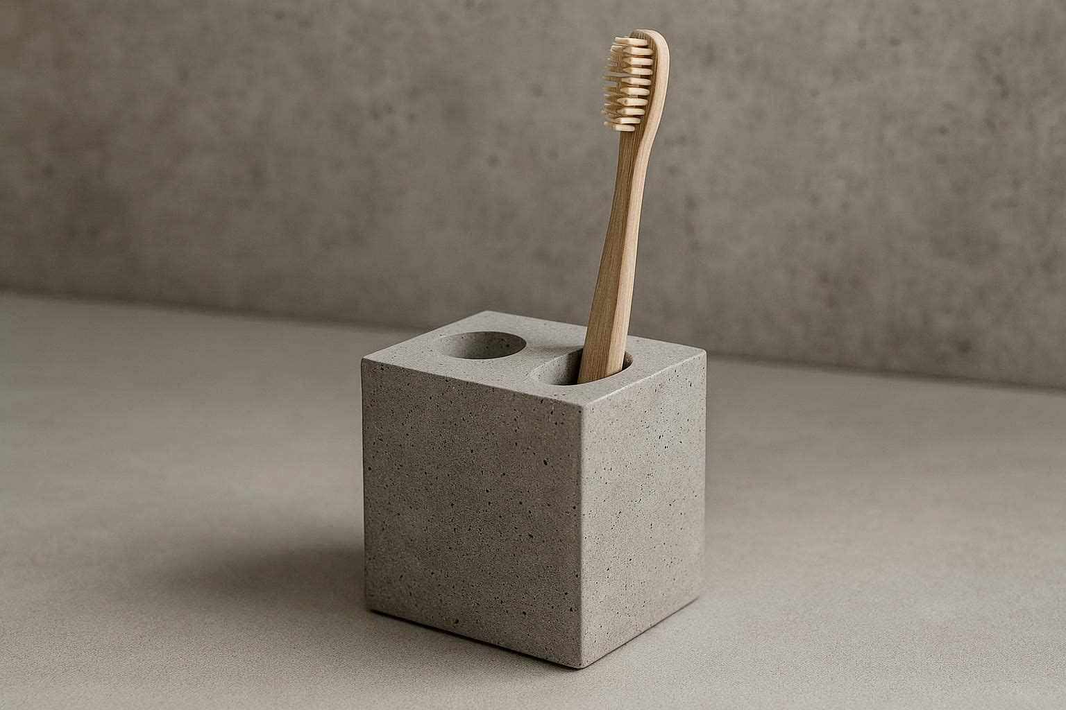 Modern Concrete Toothbrush Holder With Minimalist Drainage Hole For Industrial Style Bathroom Decor