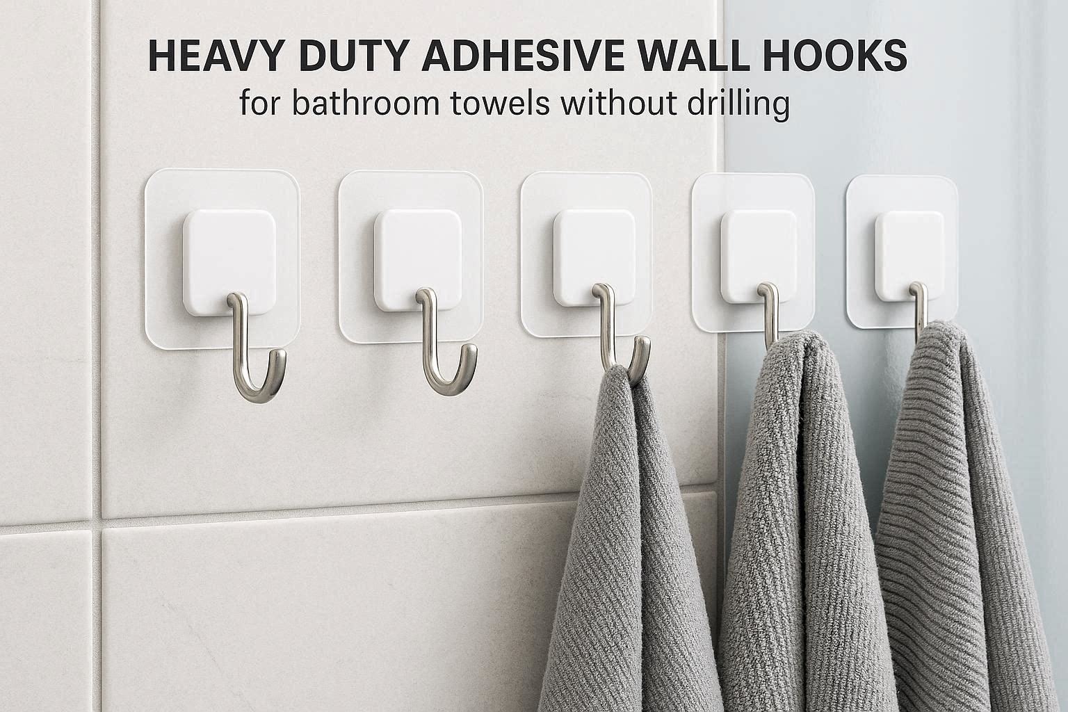 Heavy Duty Adhesive Wall Hooks For Bathroom Towels Without Drilling For Tile And Glass Surfaces