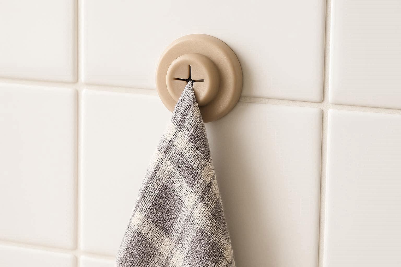 This unique design eliminates the need for traditional hooks that can snag delicate fabrics or cause towels to slide off onto the floor. The back features a strong, waterproof adhesive that bonds instantly to cabinets, tiles, or refrigerators, making it a versatile tool for both the kitchen and the bathroom.