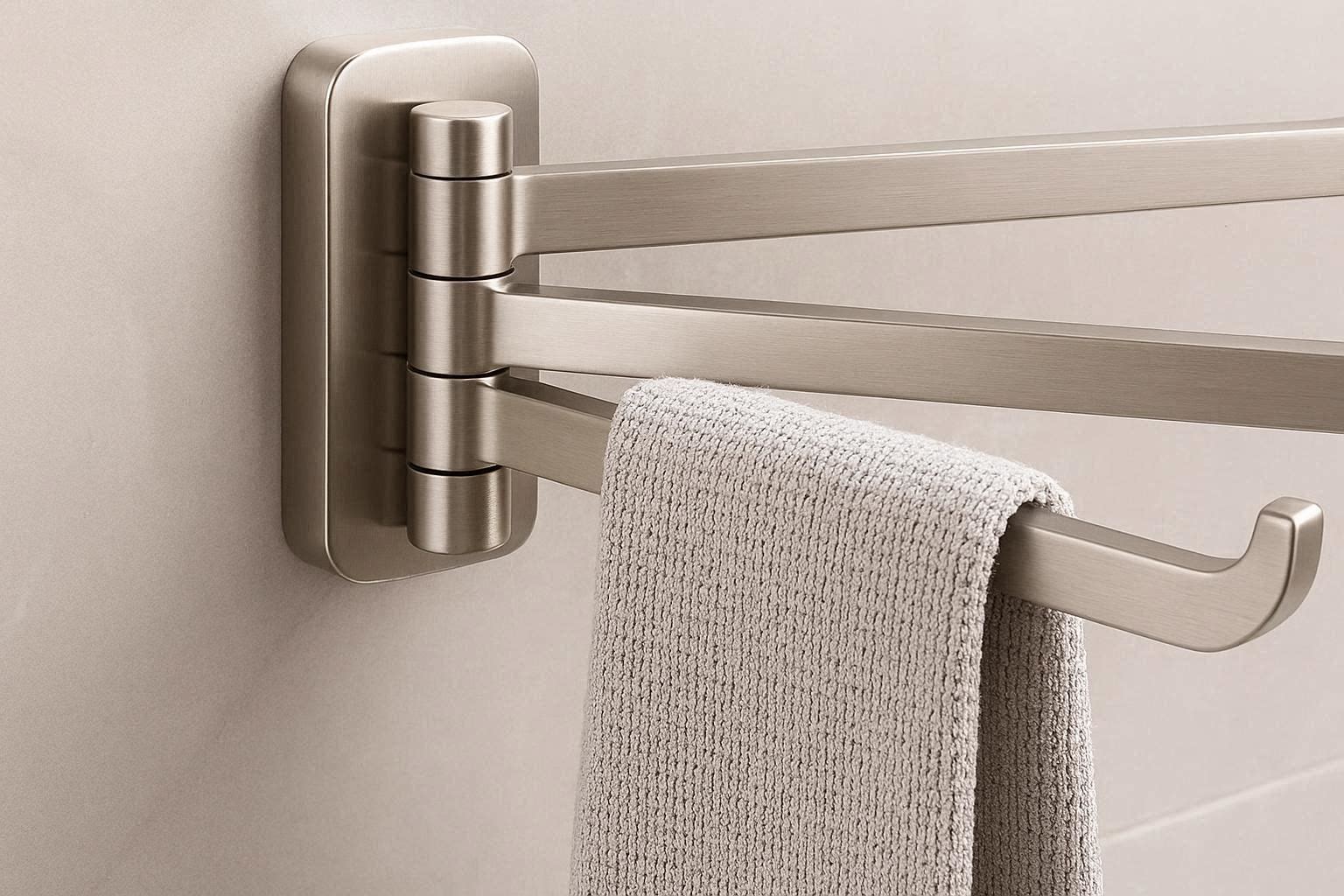 Optimize your small bathroom layout with our innovative swivel swing arm towel hook, featuring three independent folding prongs for versatile storage. This space-saving design allows you to spread the arms out to dry multiple damp towels quickly and fold them flat against the wall when not in use.