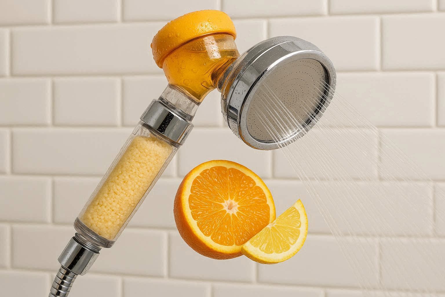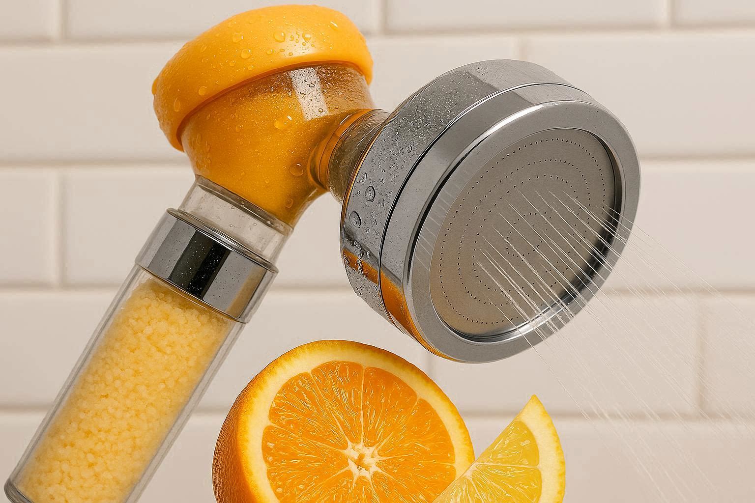 Vitamin C Infused Filter Shower Head For Chlorine Removal And Refreshing Citrus Aromatherapy